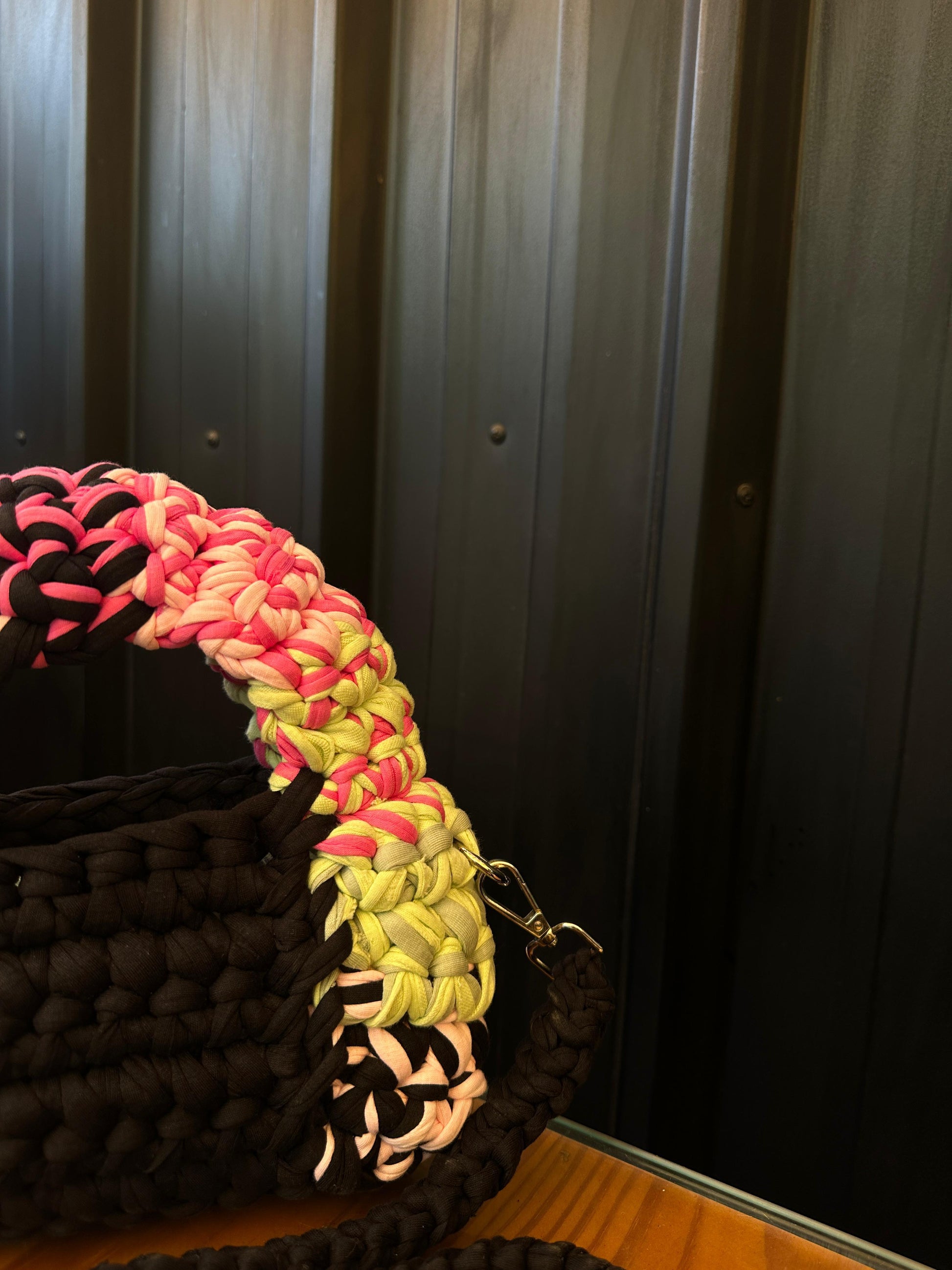 Made from 100% recycled cotton t-shirt yarn making it very sustainable